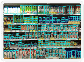 - Мерчандайзер, вооруженный мобильным устройством, делает снимок продуктовой полки и решение выдаёт ему инструкции для пополнения полки: какой именно товар поставить на какое место, какой товар лишний на этой полке.